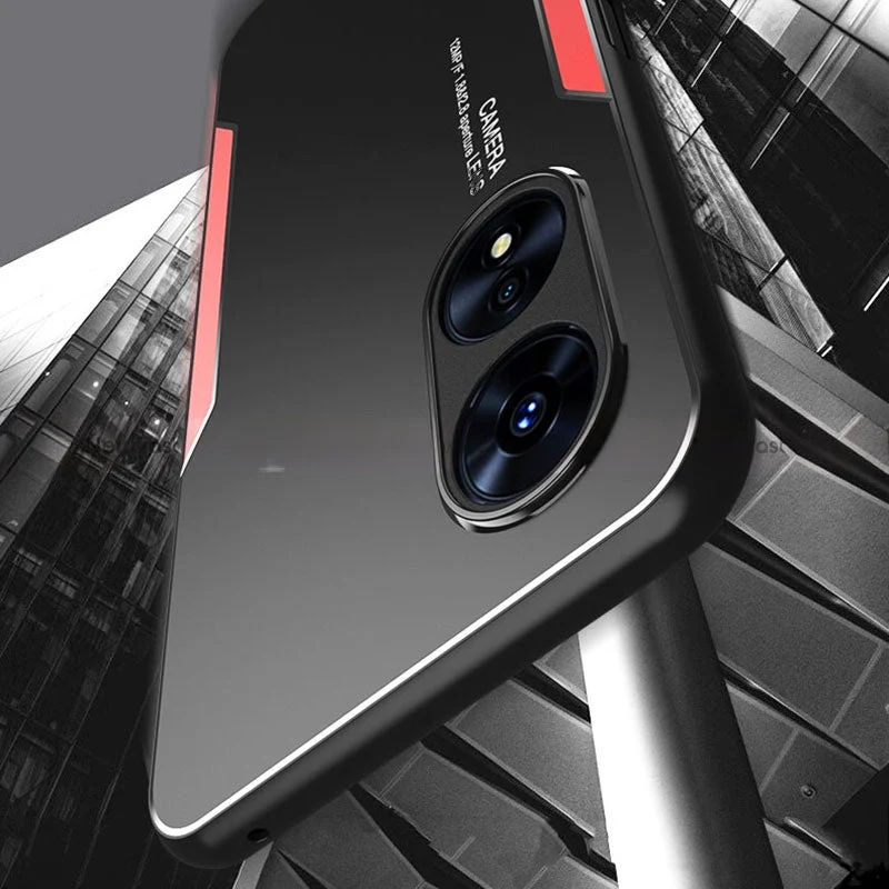 This luxury aluminum metal frame protective cover is crafted to enhance the Oppo Reno 8T 5G, providing a sleek and premium look. It guards against daily scratches and impacts while offering a smooth matte finish that ensures lasting durability and style.